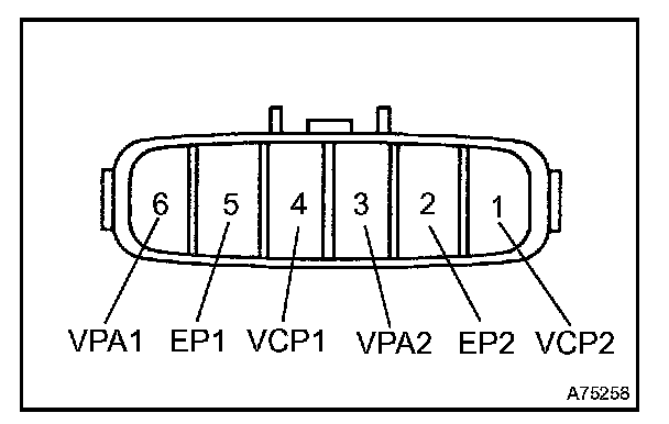 1. Using an ohmmeter, measure the resistance between terminals 4 (THA) and 5 (E2).