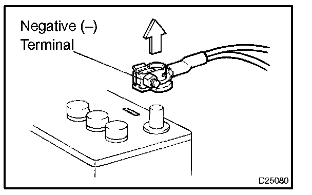 4. When the battery negative (-) terminal cable is disconnected, memories of various systems are erased. Therefore, refer to the PRE-CHECK for each system to make sure whether or not the system needs to be initialized after the battery negative (-) terminal cable is disconnected. If necessary, be sure to initialize the system.
