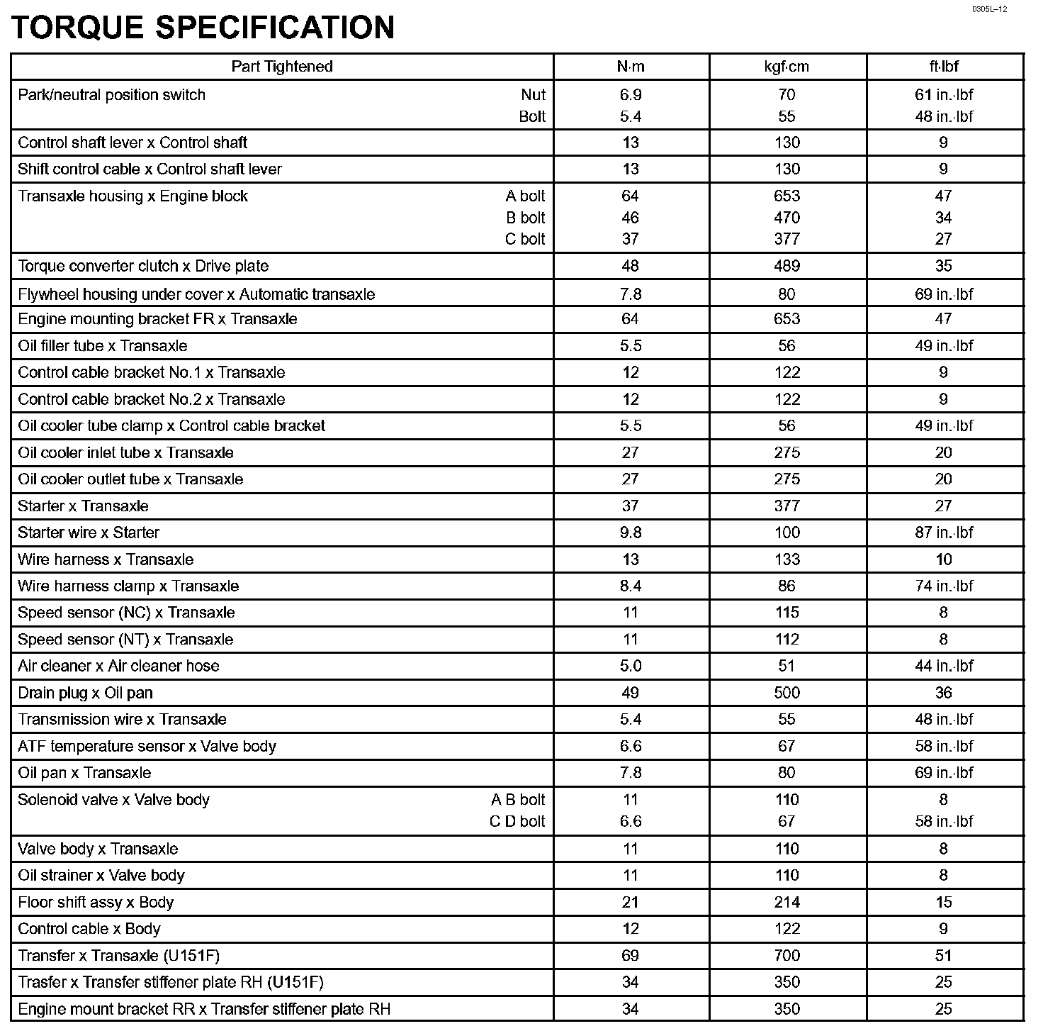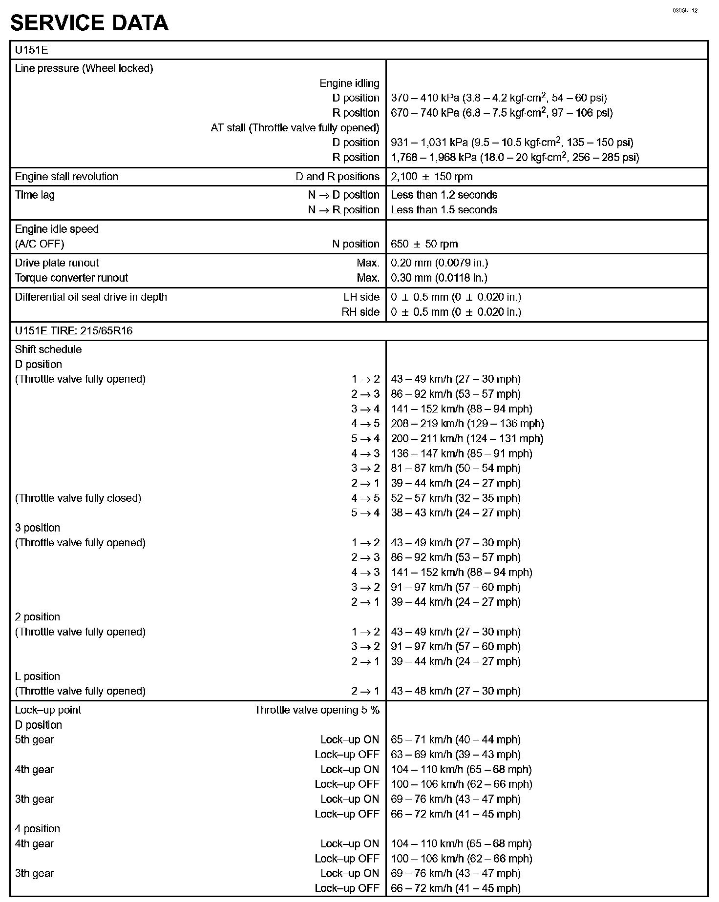 Automatic Transmission/Transaxle - Service Data Part 2: