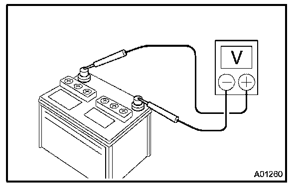 c. Measure the battery voltage between the negative (-) and positive (+) terminals of the battery.