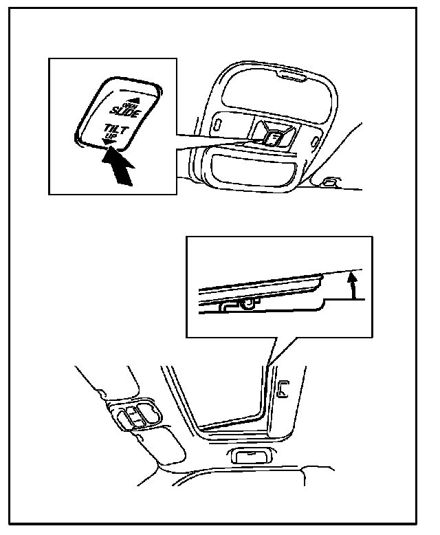 1. Push and hold the "TILT UP" side of the switch until the Moon Roof tilts all the way up and stops.