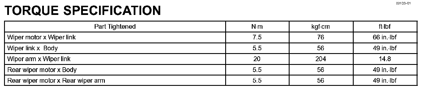 Wiper & Washer - Torque Specification: