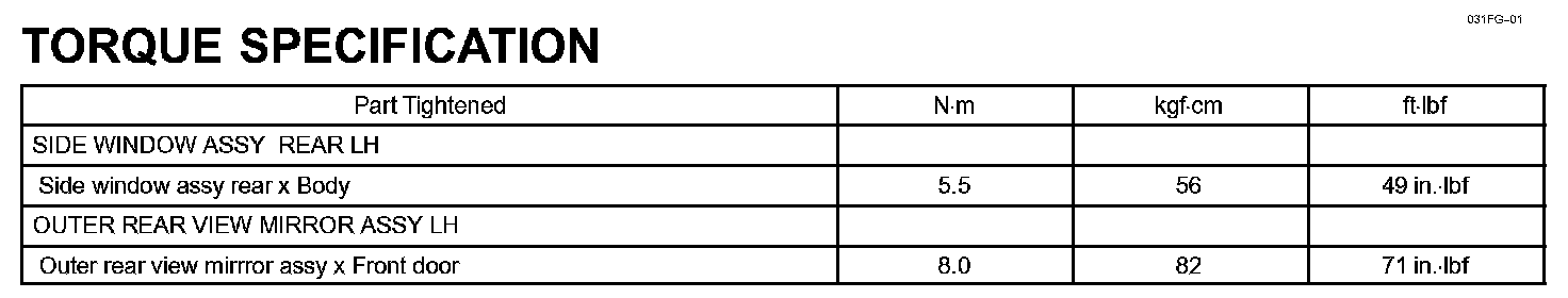Windshield/WindowGlass/Mirror - Torque Specification:
