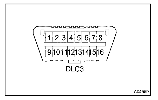 The vehicle's ECM uses ISO 9141-2 for communication. The terminal arrangement of the DLC3 complies with SAEJ1962 and matches the ISO 9141-2 format.