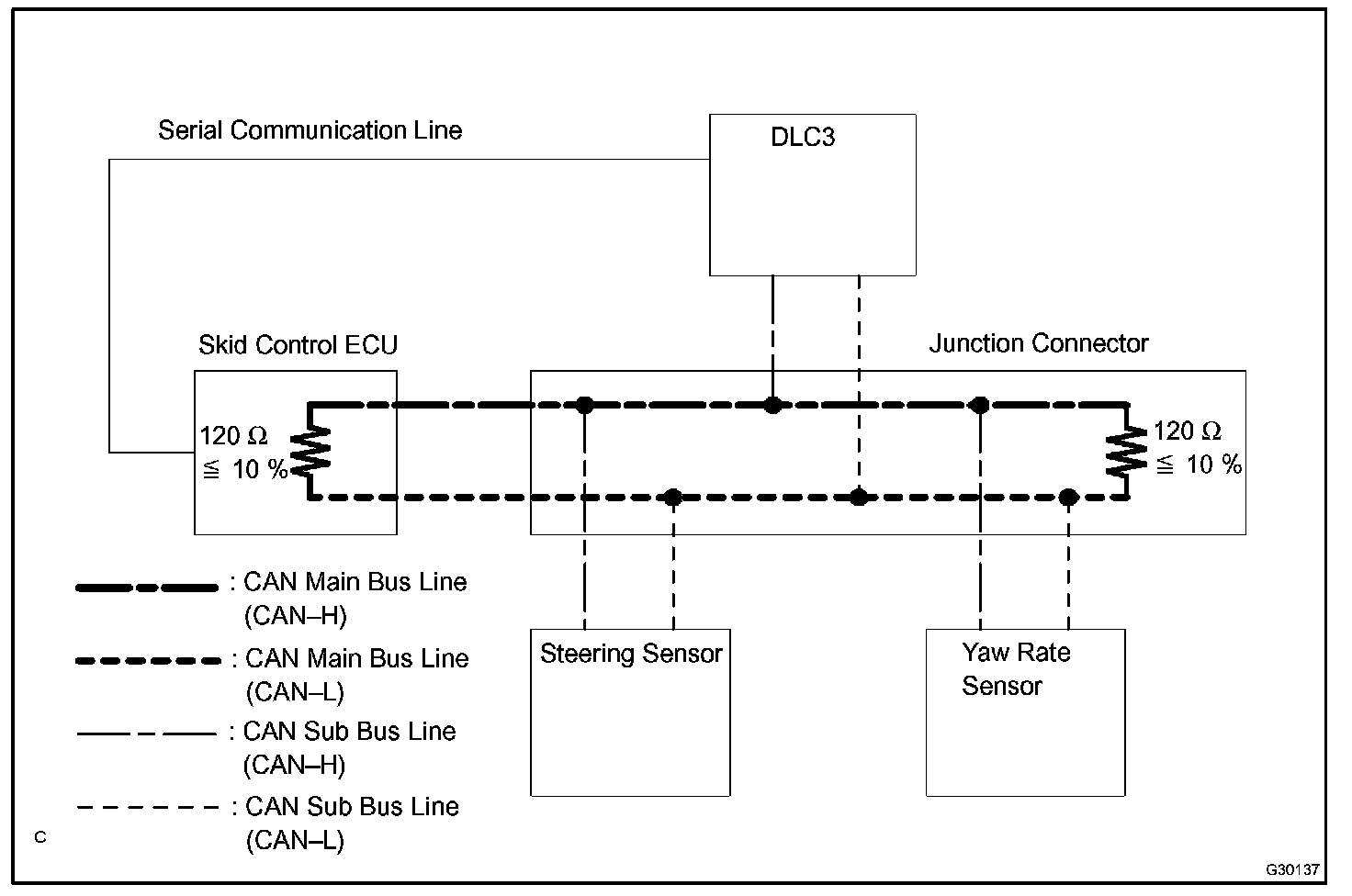 1. Sub bus line is a wire harness which diverges from the main bus line, which is the main bus of the CAN bus, to an ECU or sensor.