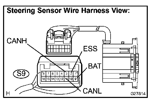 a. Check the harness side connector (S9) of the steering sensor.