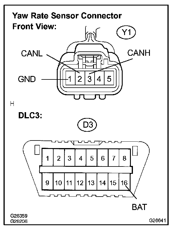 2. Disconnect the connector (Y1) from the yaw rate sensor.