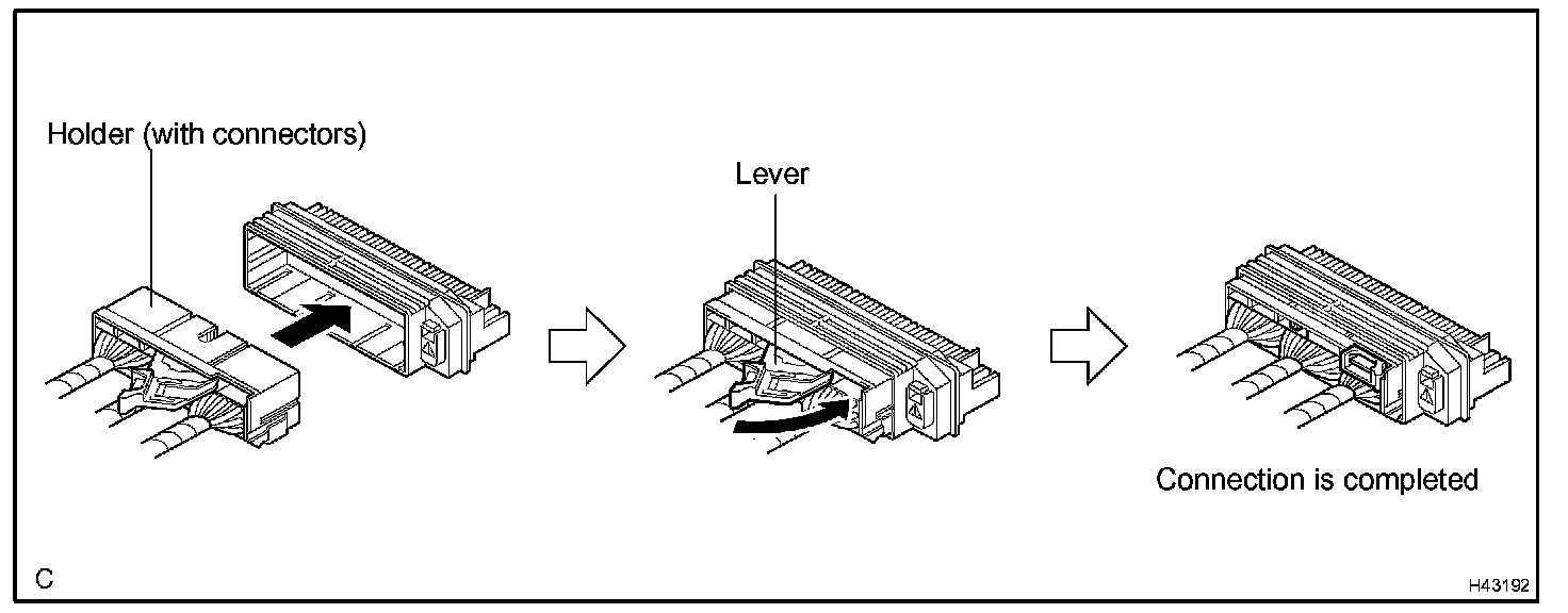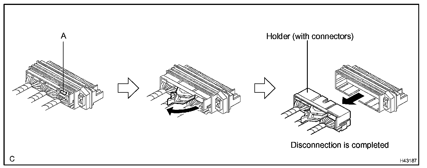DISCONNECTIONa. Pull the lever by pushing part A as shown in the illustration and disconnect the holder (with connectors).