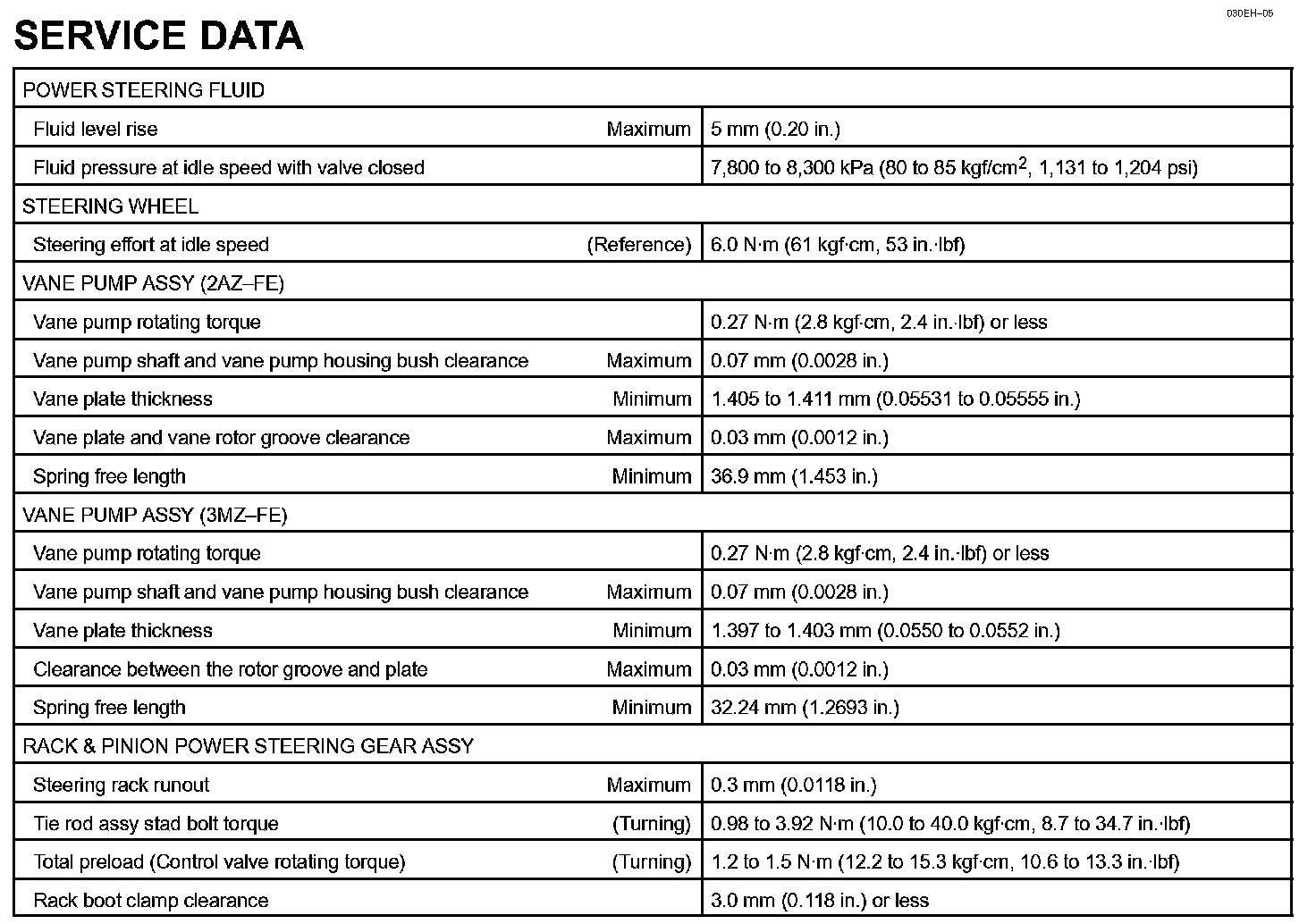 Power Steering - Service Data: