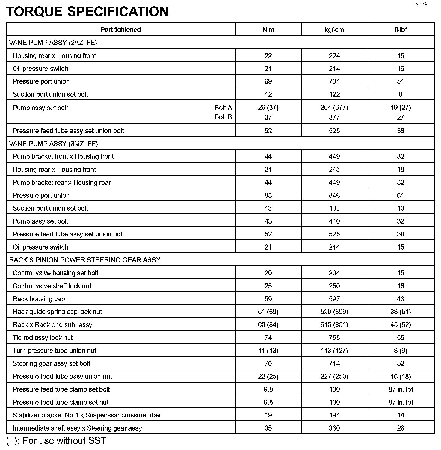 Power Steering - Torque Specification: