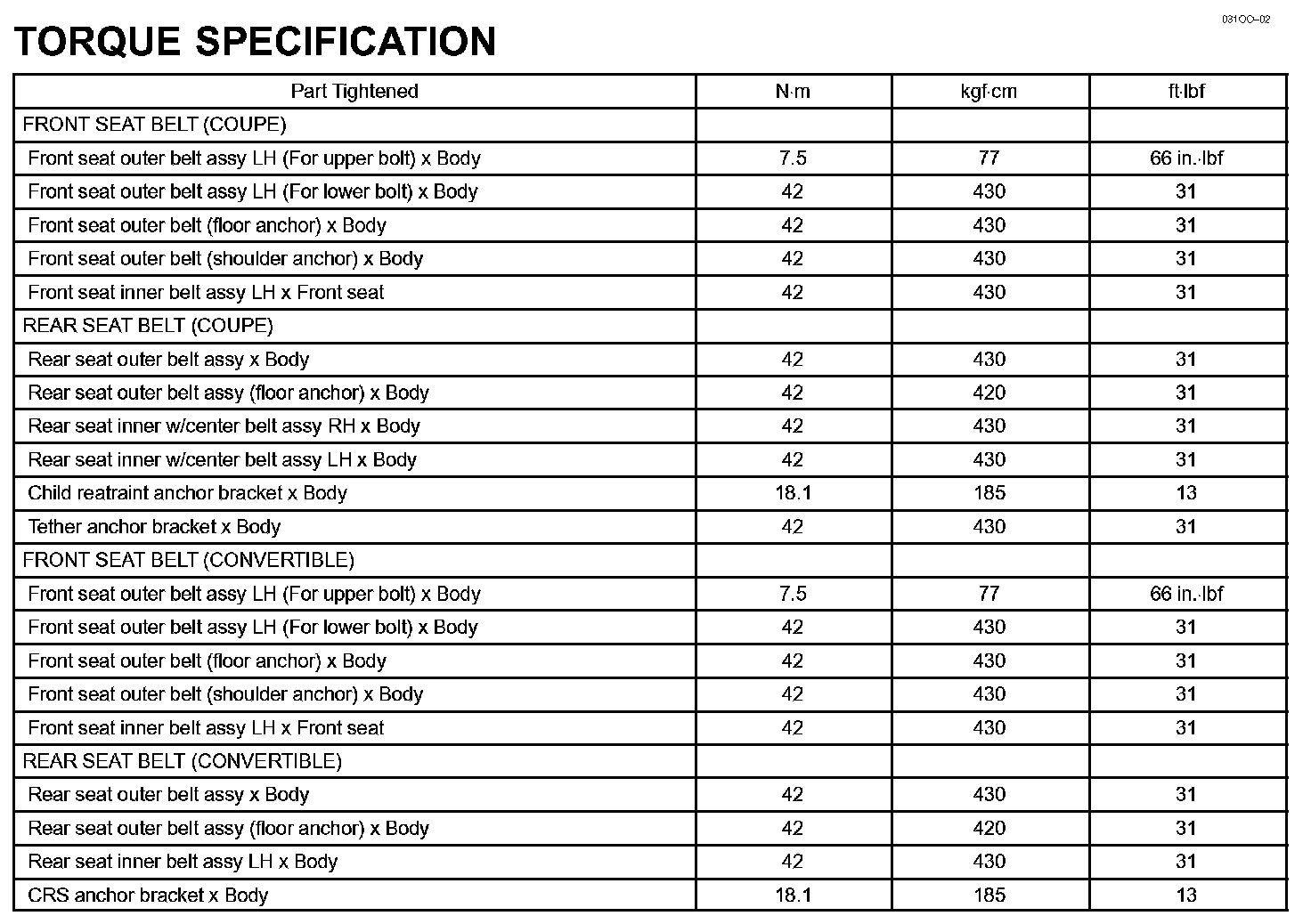Seat Belt - Torque Specification: