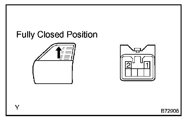 3. Connect the battery's positive (+) lead to terminal 1 of the wire harness side connector, and raise the window to the fully closed position.