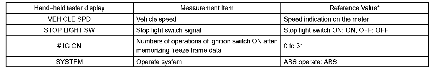 - Freeze frame data at the time the ABS operates: