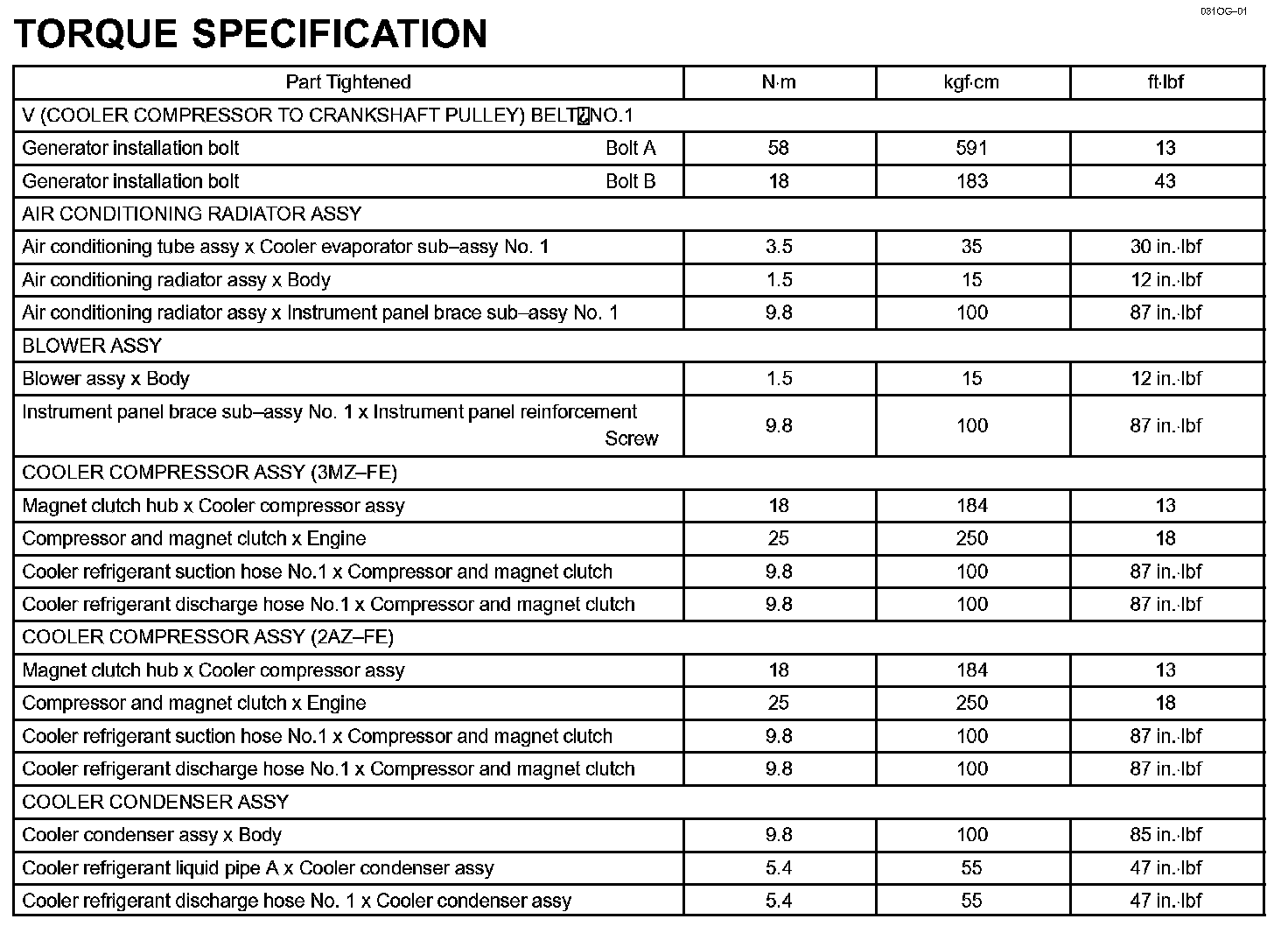 Heater & Air Conditioner - Torque Specification: