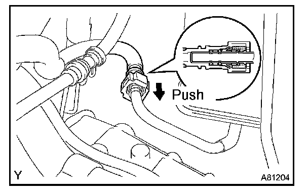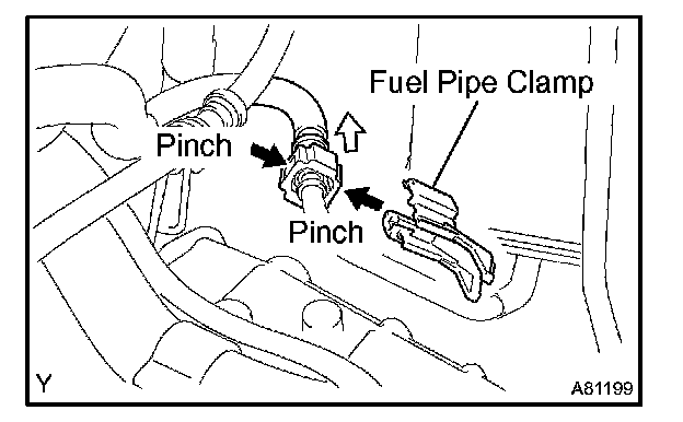 2. Pinch the tube connector and then pull out the fuel pipe No. 1.