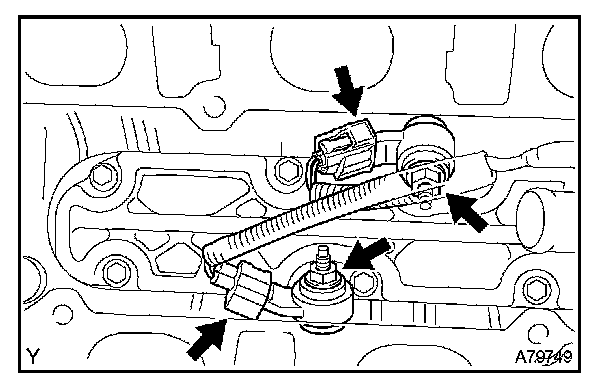 a. Install the 2 knock sensors with the 2 nuts, as shown in the illustration.