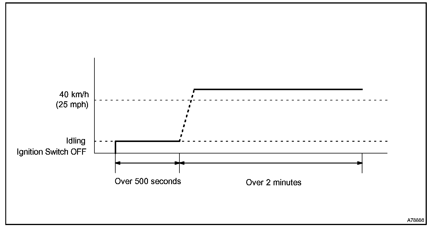 2. Drive vehicle at 64 to 88 km/h (40 to 55 mph) for approximately 4 minutes.