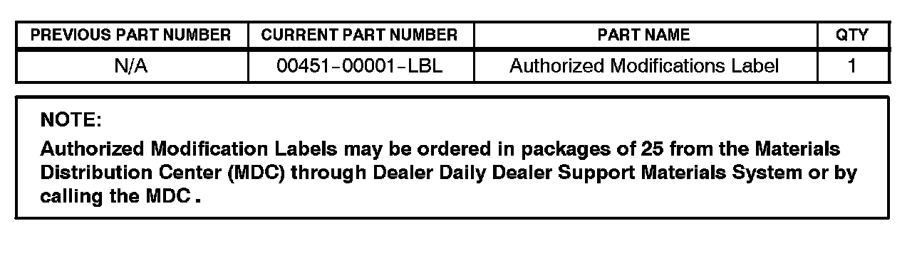 8. Enter the required information on the Authorized Modifications Label and affix it to the vehicle at the location shown in Figure 1. The Authorized Modifications Label is available through the MDC, P/N 00451-00001-LBL.