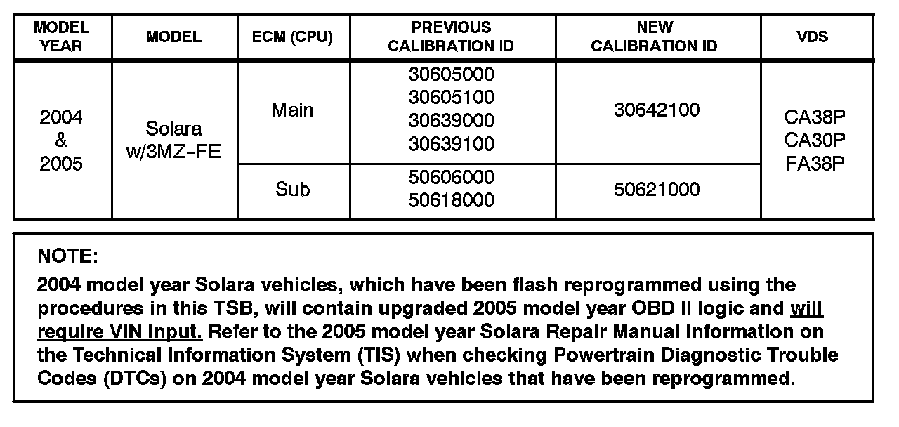 2. Follow the procedures outlined in Toyota TSB No. SS002-01, "ECU Flash Reprogramming Process," and flash the ECM (PCM) with new calibration file update.