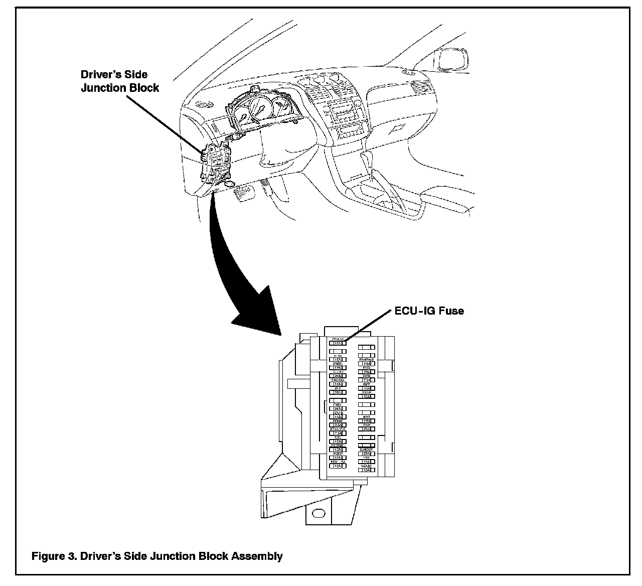 3. Reinstall the 10A ECU-IG fuse in the driver's side Junction Block assembly.