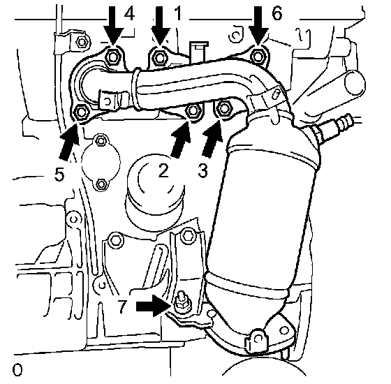 Install a new gasket and the converser with the 7 nuts. Uniformly, tighten the 7 nuts in the sequence shown in the illustration.