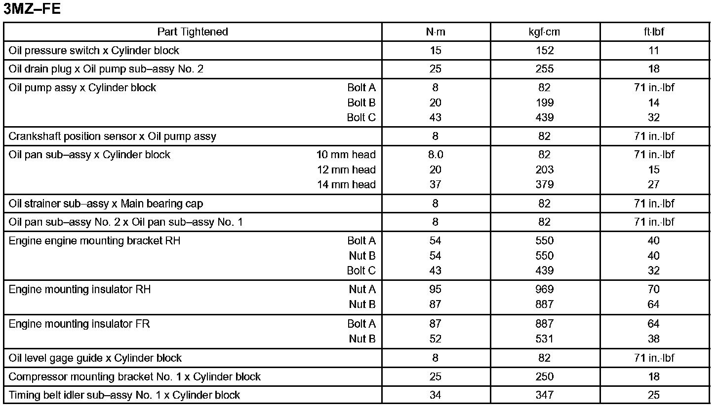 Lubrication - Torque Specification Part 1:
