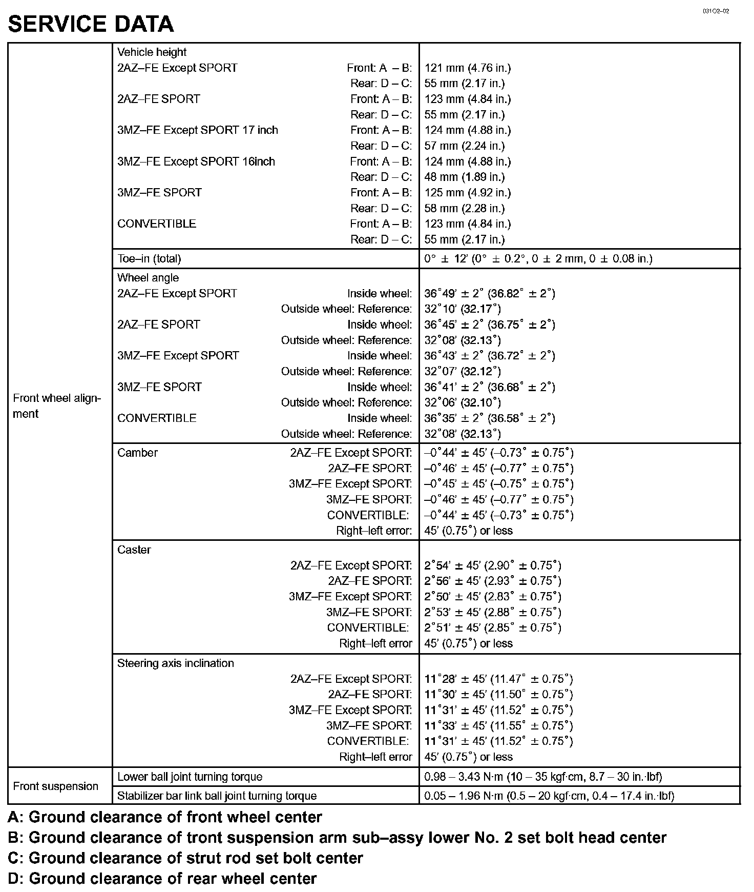Front Suspension - Service Data:
