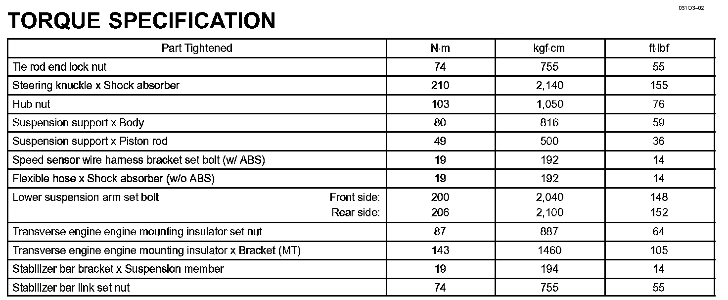 Front Suspension - Torque Specification: