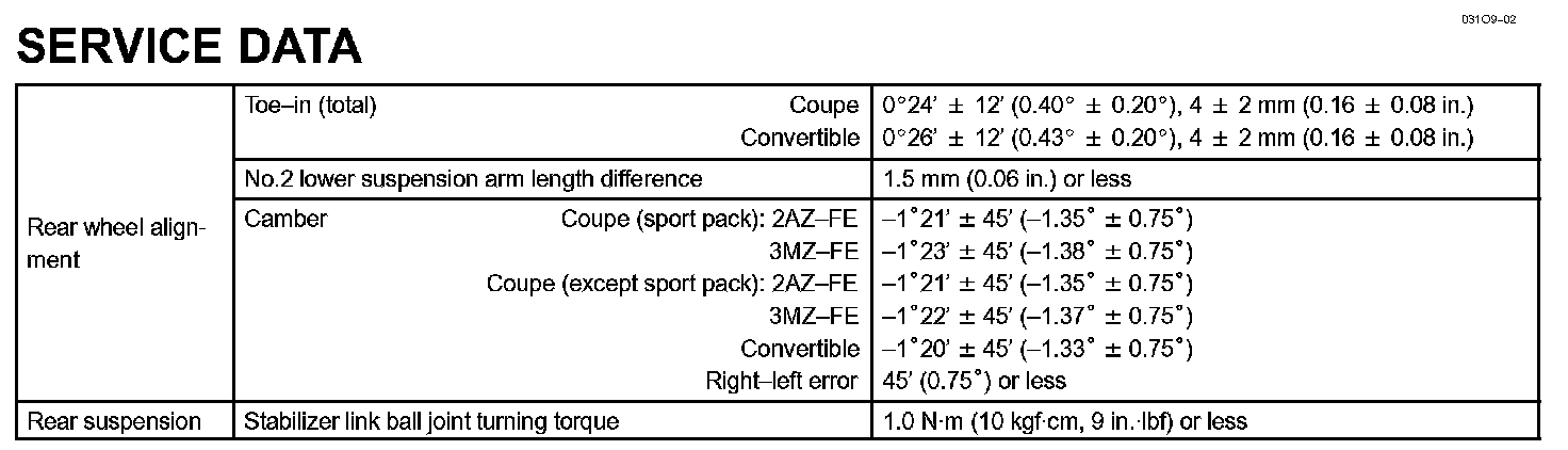 Rear Suspension - Service Data: