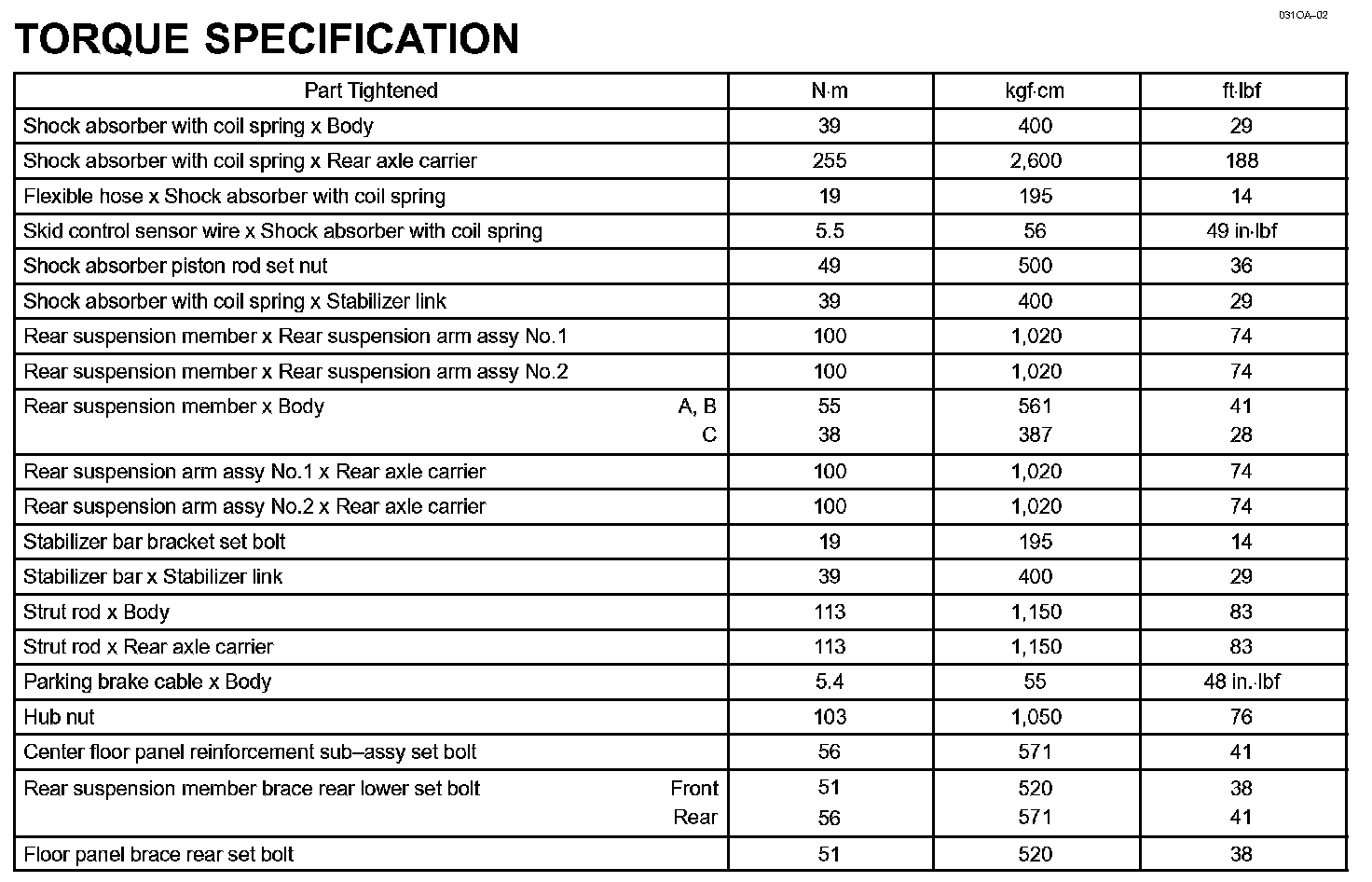 Rear Suspension - Torque Specification: