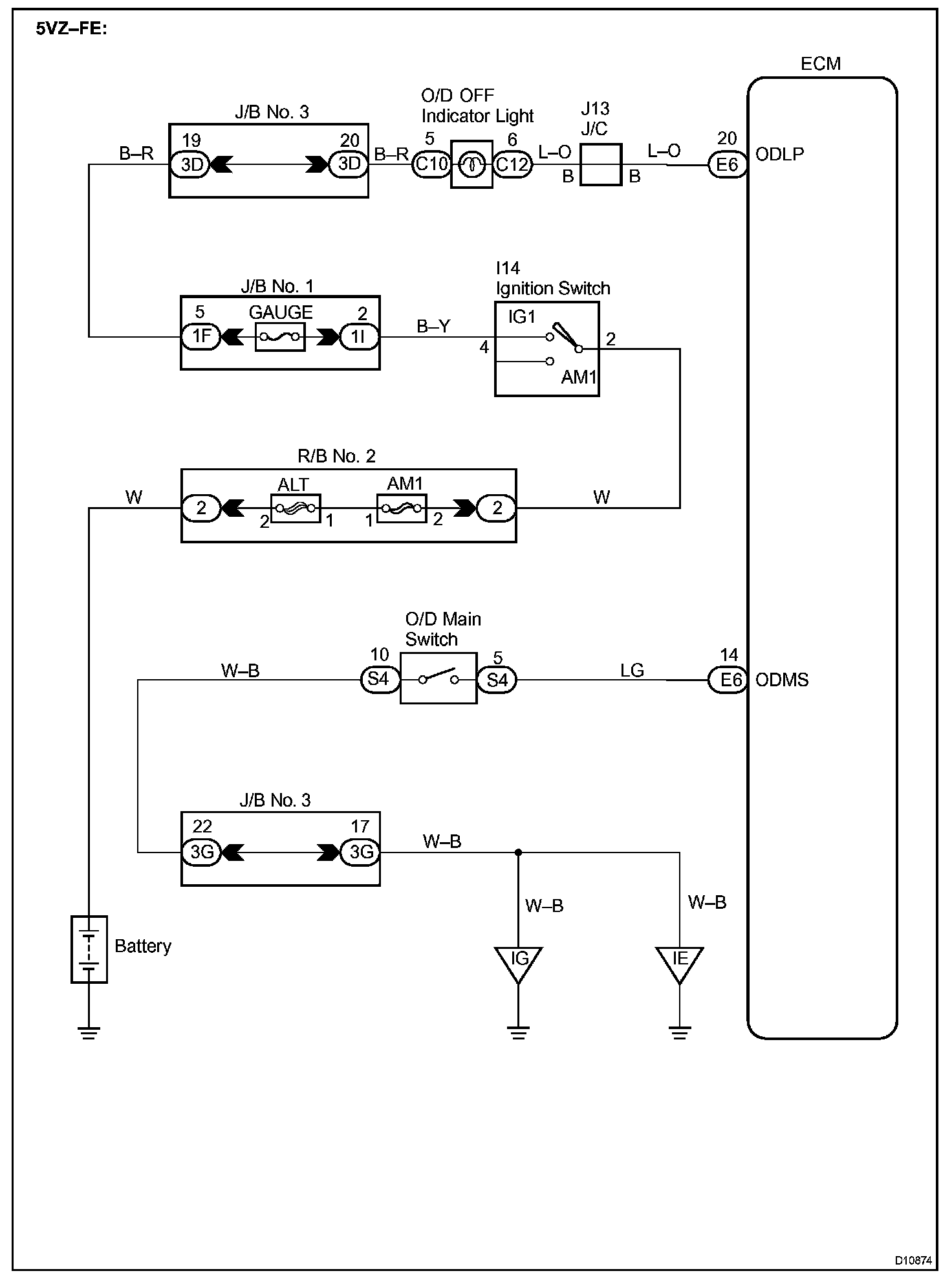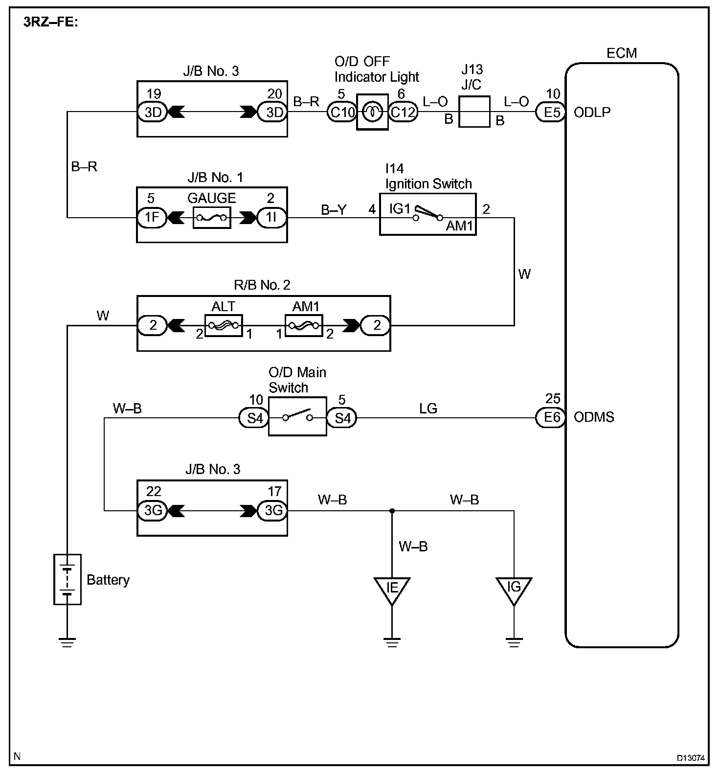 O/D Main Switch & O/D Off Indicator Light Circuit