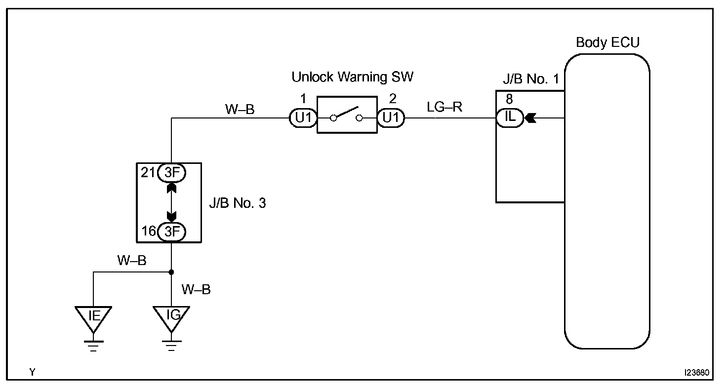 Key unlock warning switch comes on when the ignition key is inserted in the key cylinder and goes off when the ignition key is removed. The body ECU operates the key confinement prevention function while the key unlock warning switch is on.