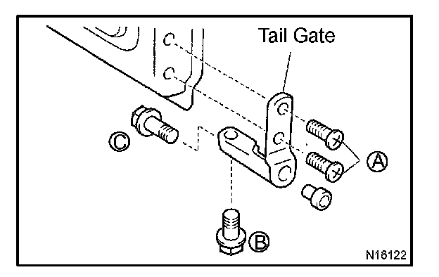 Remove the 2 bolts and tailgate hinge.