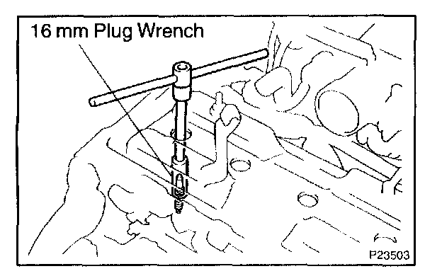 b. Using a 16 mm plug wrench, remove the 4 spark plug.