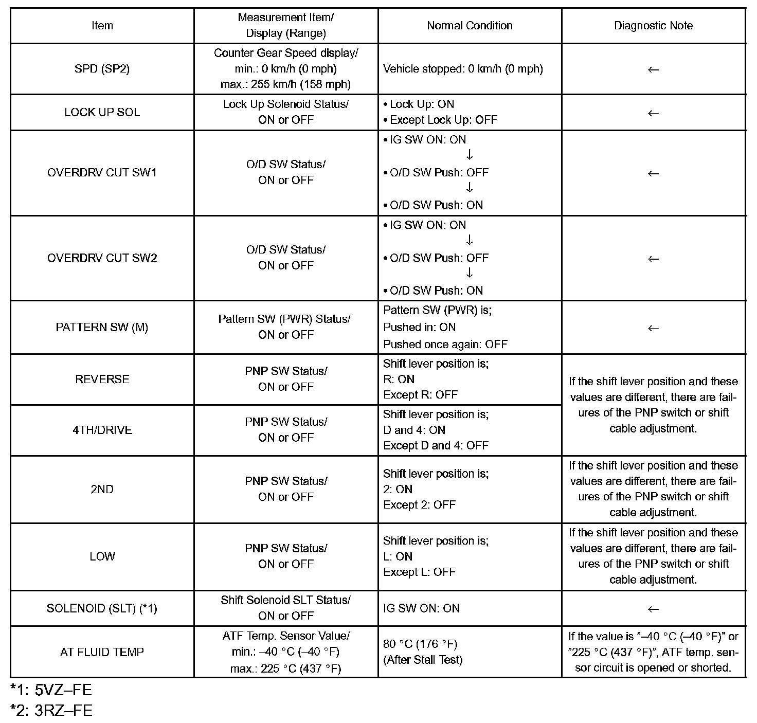 DATA LISTHINT: According to the DATA LIST displayed by the OBD II scan tool or Hand-held tester, you can read the value of the switch, sensor, actuator and so on without parts removal. Reading the DATA LIST as the first step of troubleshooting is one of the methods to shorten the labor time.