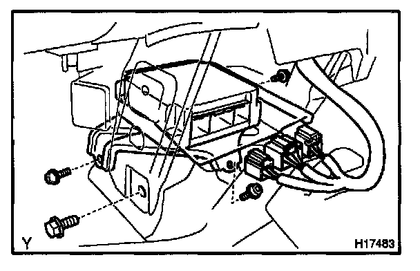 - When installing the airbag sensor assembly, take care that the SRS wiring does not interfere with other parts and is not pinched between other parts.