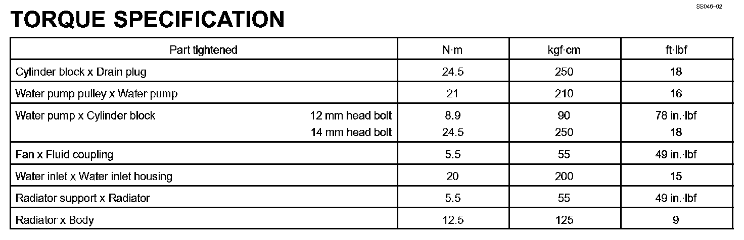 Cooling (2RZ-FE, 3RZ-FE) - Torque Specification: