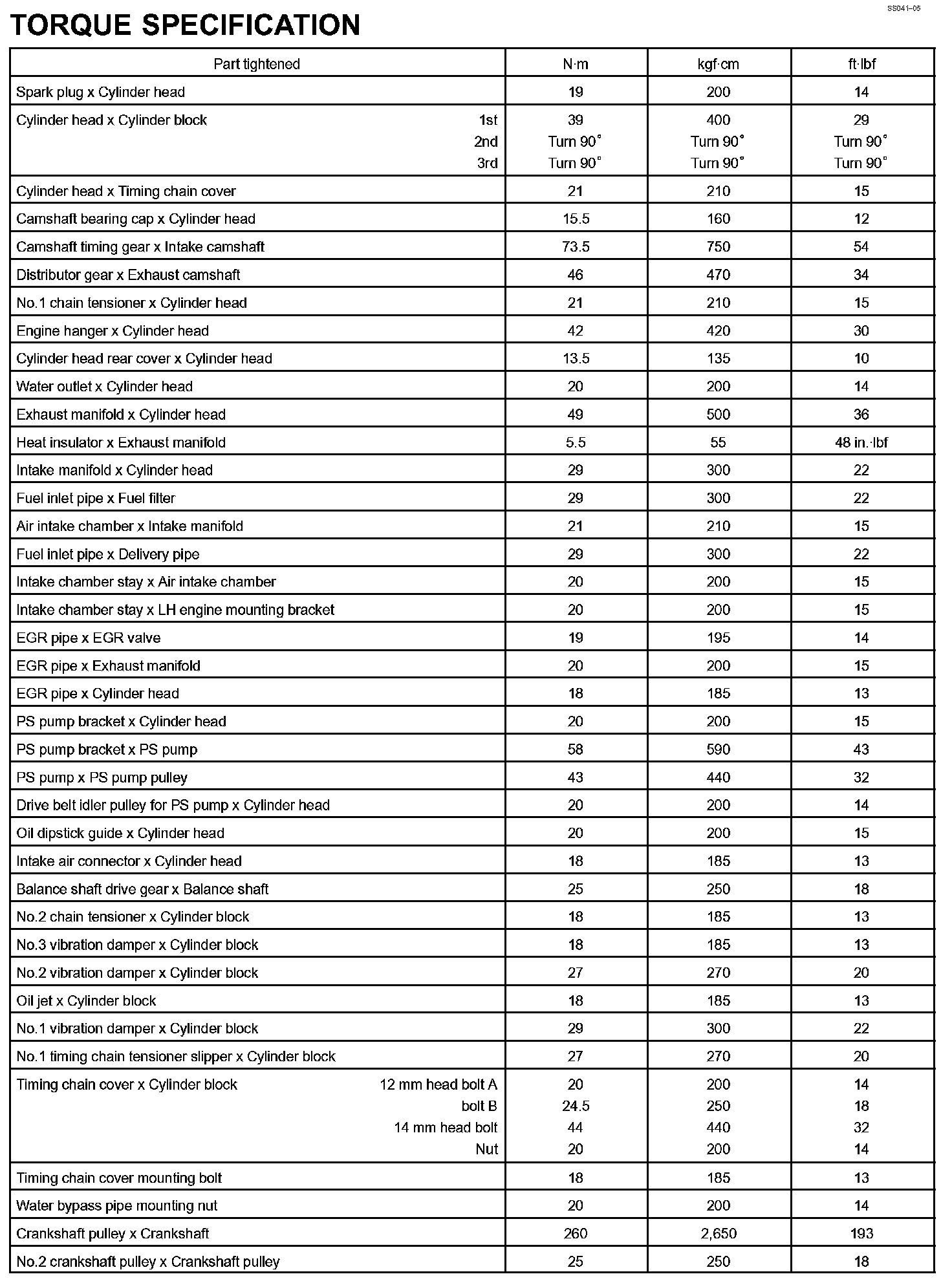 Engine Mechanical (2RZ-FE, 3RZ-FE) - Torque Specification Part 1: