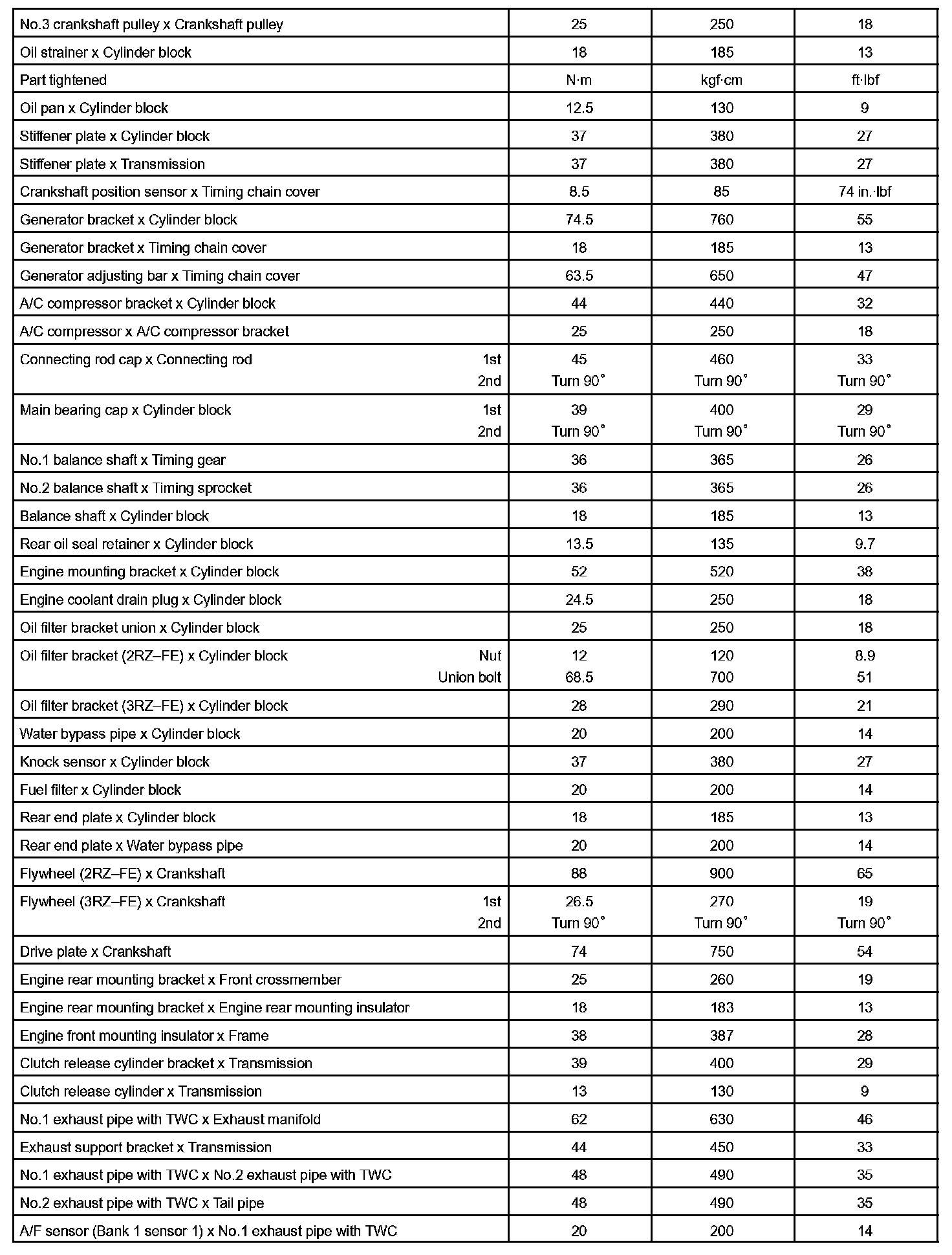 Engine Mechanical (2RZ-FE, 3RZ-FE) - Torque Specification Part 2: