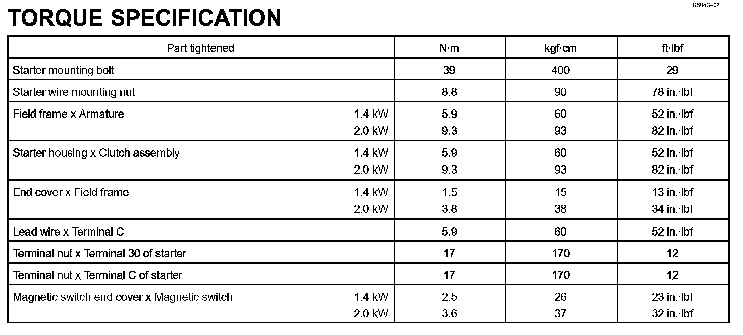 Starting (2RZ-FE, 3RZ-FE) - Torque Specification: