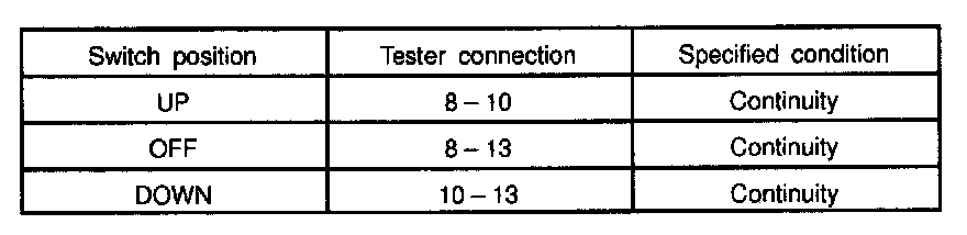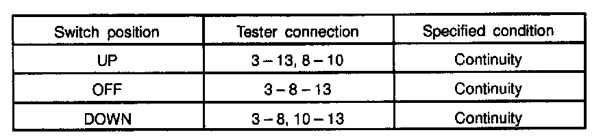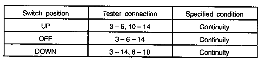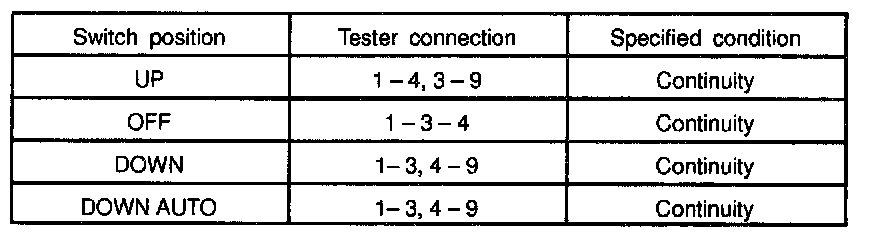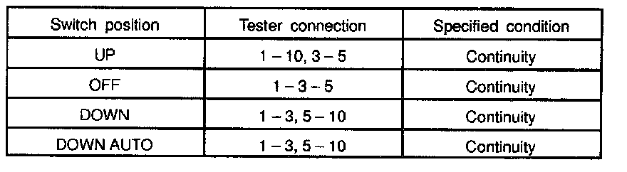 INSPECT POWER WINDOW MASTER SWITCH CONTINUITY