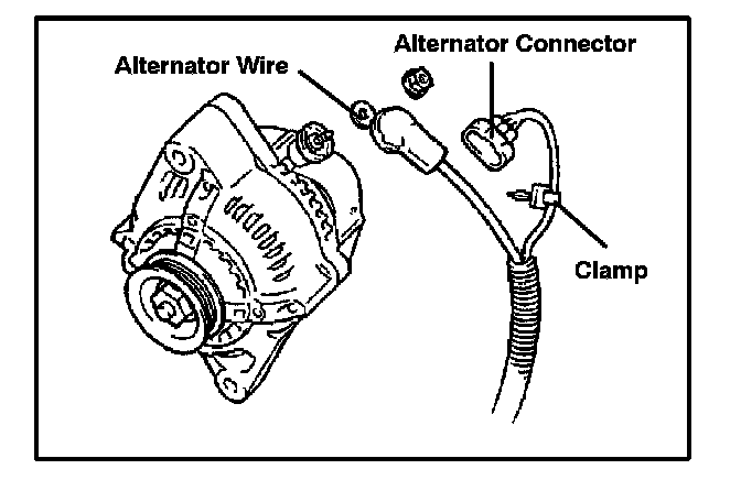 E. Disconnect the alternator connector and clamp.