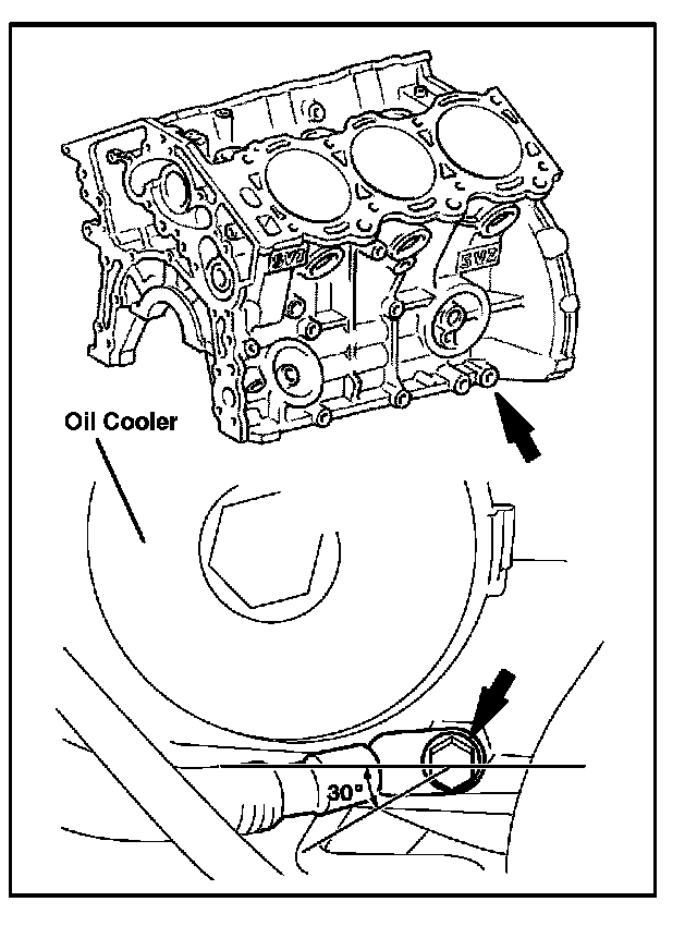 Tighten the ground strap at an angle of 30° or less, as shown in the illustration, so that the oil cooler does not interfere with the wire.