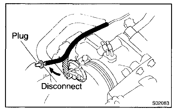c. Disconnect the vacuum hose from the throttle opener and plug the hose end.
