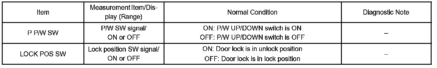 DATA LISTHINT: Using the hand-held tester DATA LIST allows switch, sensor, actuator and other item values to be read without removing any parts. Reading the DATA LIST early in troubleshooting is one way to shorten labor time.