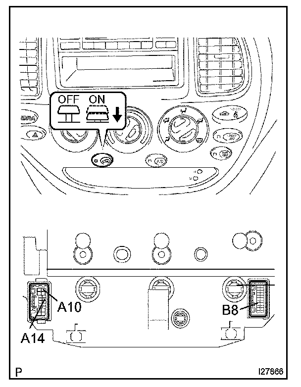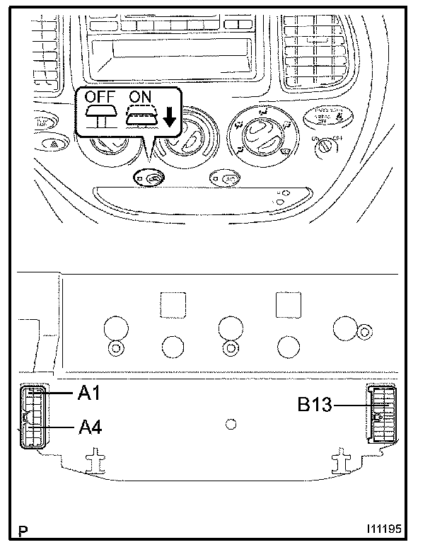 (b) Push the A/C button in and check that the A/C indicator lights up.