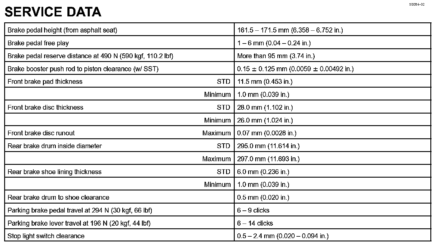 Brake - Service Data: