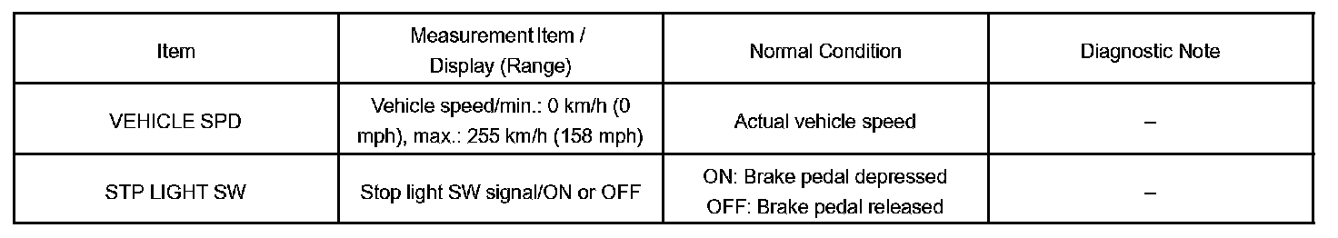 HINT: According to the DATA LIST displayed by the hand-held tester, you can read the value of the switch, sensor, actuator and so on without parts removal. Reading the DATA LIST as a first step of troubleshooting is one of the method to shorten the labor time.