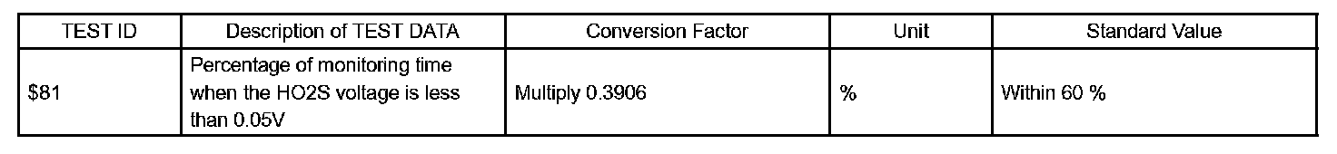 2. Find the Conversion Factor value of "TIME $81"in the O2S TEST RESULT chart. 0.3906 is specified for $81 in this chart.