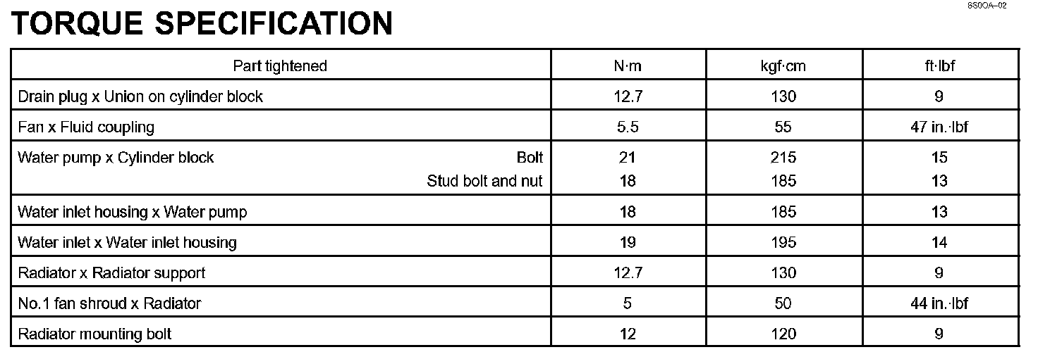 Cooling - Torque Specification: